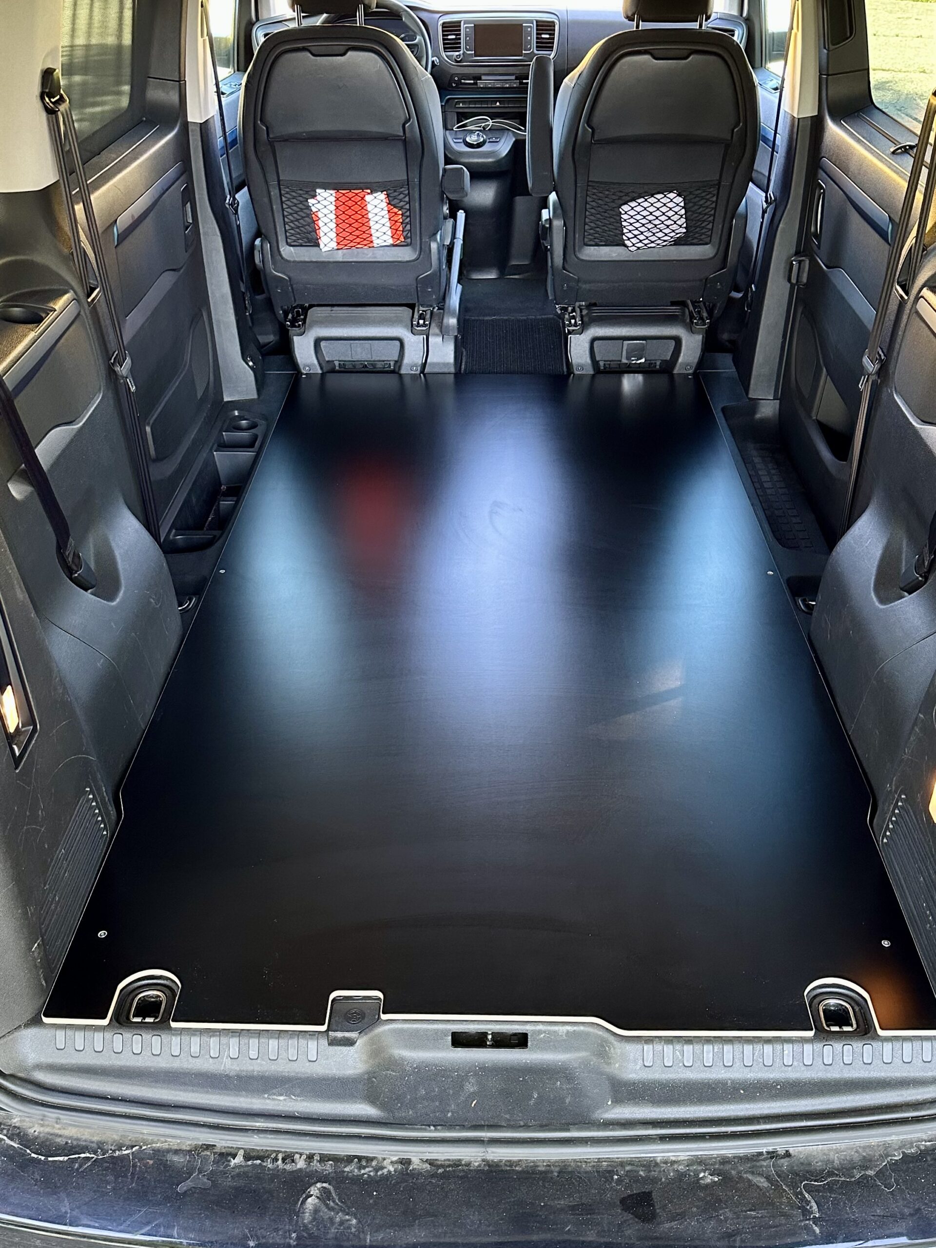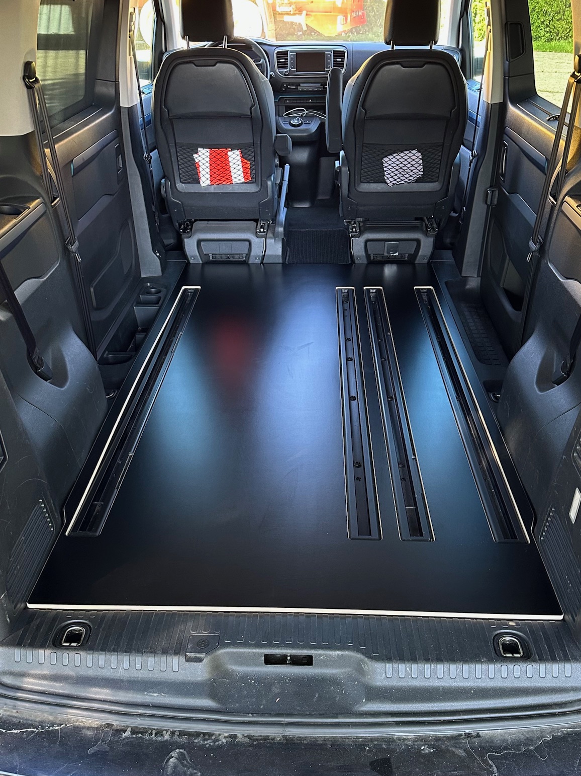 En Tapa se encuentra por encima de los raíles y convierte así el compartimento de carga en un Superficie completamente cerrada y plana. Consta de un tablero multiplex de abedul de 9 mm de grosor.