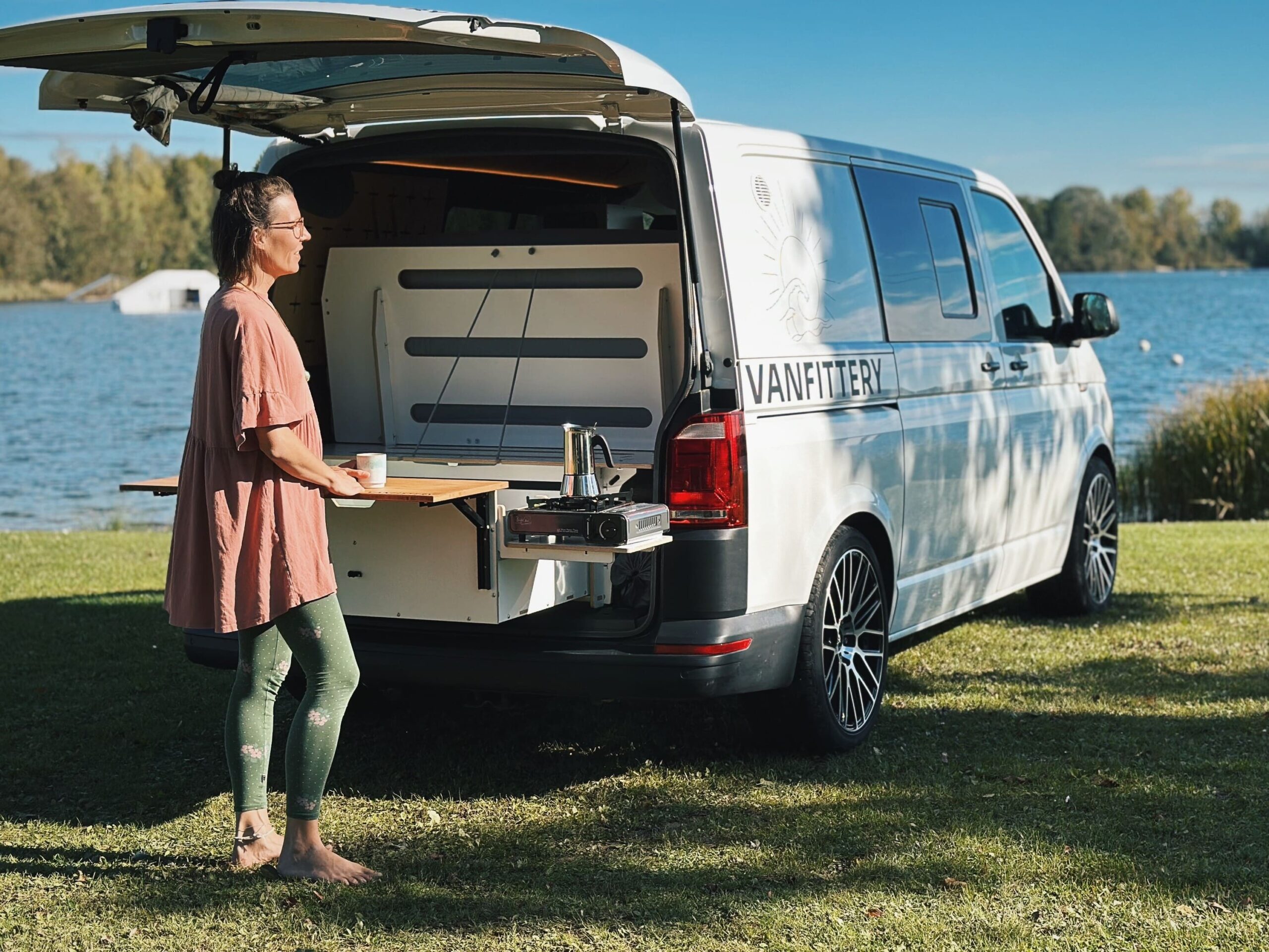 Mit dem optionalen Klapptisch, Wassertank und Kocherhalter wird die hintere Schublade zur vollwertigen Heckküche. Alle Zubehörteile sind perfekt auf das Bettsystem abgestimmt.