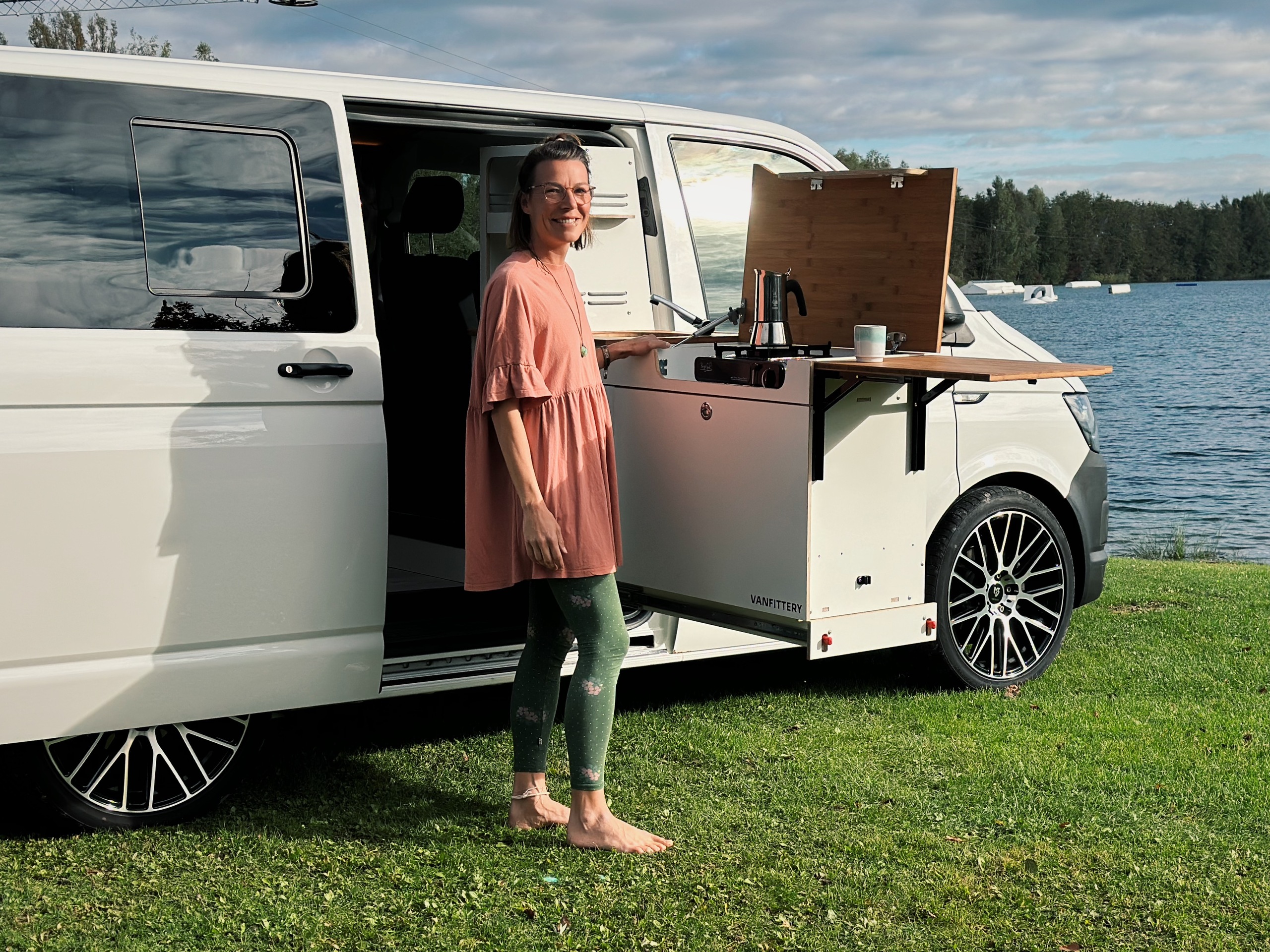 Mit der Küche kannst du im Bus kochen – oder stehend im Freien, ganz ohne Gerüche und Platznot im Bus!