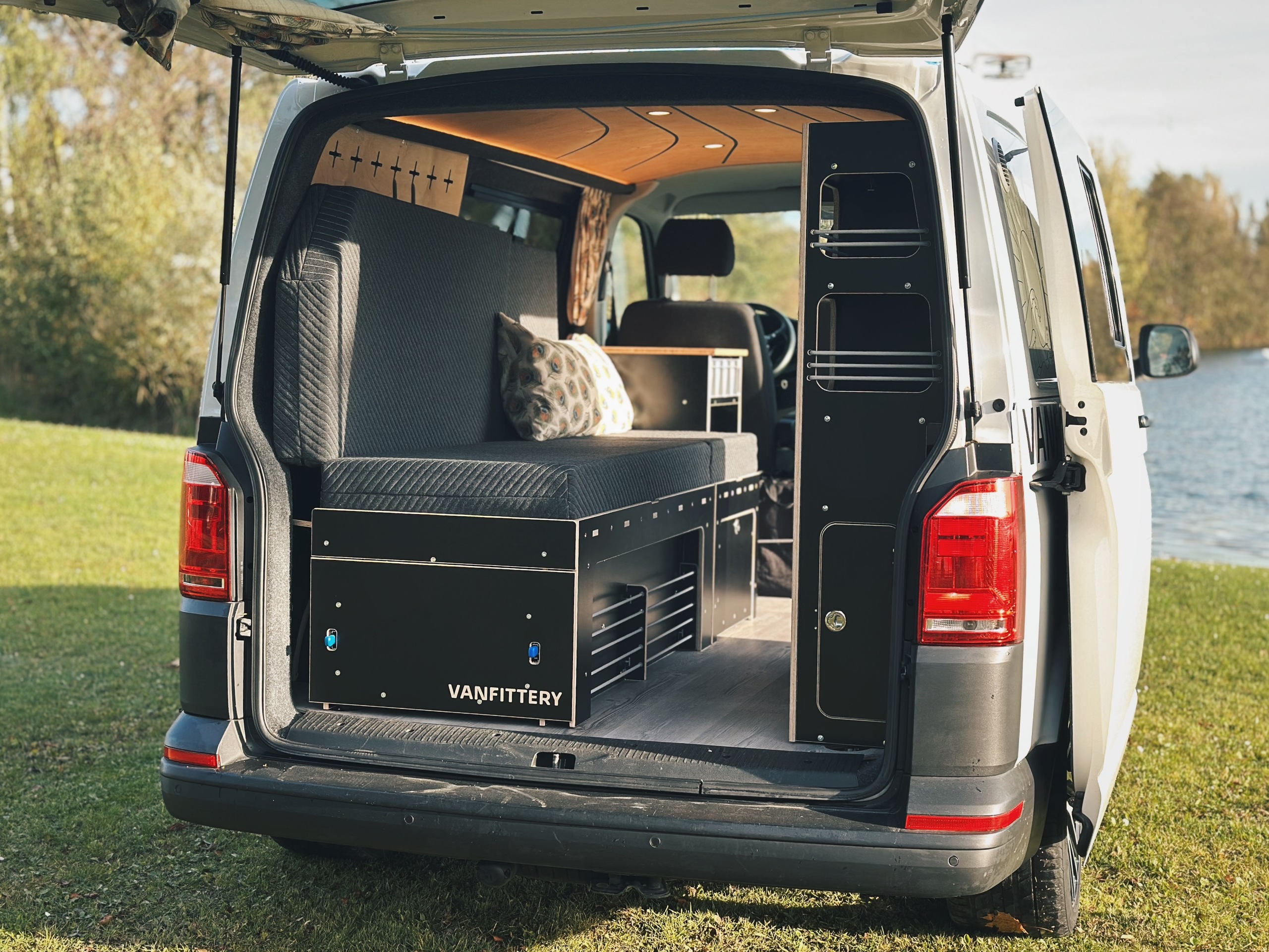 Ähnlich wie bei IKEA kannst du dein Setup aus Schlaf-, Küchen- und Staumodulen flexibel zusammenstellen. Der Clou: Die Module werden einfach mit Spanngurten befestigt – ohne Schrauben, ohne Bohren. So kannst du dein Fahrzeug in wenigen Minuten in einen Camper verwandeln und genauso schnell wieder zurückbauen. Perfekt für alle, die ihren Van im Alltag nutzen und am Wochenende ins Abenteuer starten wollen.